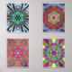 Presenting a set of four Kinetic Collage kaleidoscope compositions created from my legacy psychedelic light show screen capture images. 1/30th of a second of random chaos snap shots re-shaped into elegant balance. These kaleidoscope posters serve as both mandalas for meditation and focal points for the imagination. Brilliant colors paint the screen in projected syncopation. Exotic shapes shift and careen, spinning vision with sensation. A crazy scene and that’s a fact. Making sense seems out of reason. But when you snap a slice intact — there’s potential for cohesion. Copy and paste it, flip and seal. Repeat until the arc’s complete. Construct it so it will reveal a bright kaleidoscopic treat. Thus from chaos, a balanced form. Perfect in pleasing symmetry. If only life would so conform, we all could live in harmony…Please note: If you wish to have any Zazzle product imprinted with one of my arts, let me know your preferences and I’ll make it happen. kineticcollage@cox.net