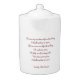 It was great to be able to be creative with my own pictures, and add fonts and other options Zazzle makes available to make my gift personal. The teapot became a special anniversary keepsake my brother and his wife raved about. Just the way I ordered it. I probably should have made the lettering a little darker, or white to stand out against the sky in the photos, but it turned out well.