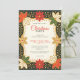 Set the stage for a festive celebration with this elegant Christmas party invitation, where classic holiday cheer meets sophisticated design. The dark, moody border frames the card with a striking contrast, featuring an intricate pattern of vibrant red and white poinsettias accented with gold and deep forest green leaves. Each delicate snowflake and petal is kissed with metallic gold, adding a shimmering touch. The back of the card features a stunning repeating pattern of stylized poinsettia snowflakes, ensuring a complete and polished look from every angle.