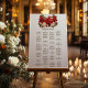 Adorned with a stunning poinsettia floral motif in rich red hues, symbolizing love and celebration, this seating chart adds a touch of warmth and sophistication to your wedding venue. The design captures the essence of the holiday season, creating a welcoming atmosphere for your guests.