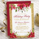 Poinsettia Floral Gold Glitter Red Holiday Party Invitation