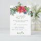 Poinsettia response card. This design features a watercolor illustration of Poinsettia with an arrangement of mistletoe, pine branchlet, pine cones and red berries.