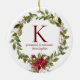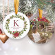 Poinsettia Holly Monogram Holiday Photo Ceramic Ornament