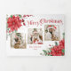 Poinsettia & Merry Christmas Typography 3-Photo Tri-Fold Holiday Card