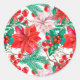 Poinsettia, Pine Boughs and Red Berries Classic Round Sticker