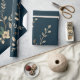 Winter Blooms: A delicate wreath of cream-colored flowers and leaves whispers elegance against a deep navy background. This design captures the serene beauty of winter, perfect for adding a touch of sophistication to your holiday gifts or decor.