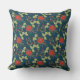 Poinsettias and Holly Christmas Pattern Throw Pillow