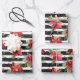 Poinsettias, Black Striped Christmas Wrapping Wrapping Paper Sheets