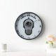 The size of the clock is dramatic and the abstract alcohol ink design is soothing and intricate at the same time. I chose the black frame that adds pop to the blue and gold design. The gold printing would be better in a slightly darker or larger font. I love it and I’m looking for just the right place in ny new apartment. I would recommend this clock for a personal gift or a present. I feel that the quality is excellent for the money! I’m a bit of a clock nut so I’m pretty particular about my purchases. The clock is larger in diameter than many if the clocks I have, so it stands out very well. I think a slightly darker printing color and a moderately larger size would best suit a professional decor or add more impact in a work place item.