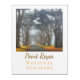 Black and white photograph features a small road lines with coastal cypresses at Point Reyes National Seashore on a foggy morning.