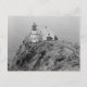A vintage photograph of the Point Reyes Lighthouse perched atop an oceanside cliff in California.