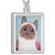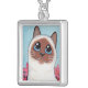 Cute cat art pendant. Artwork features an acrylic painting of a cream and chocolate pointed Birman cat sitting amongst pink flowers. Copyright © Lisa Marie Robinson All rights reserved. It is illegal to use or duplicate this, or any of our images, without written permission.