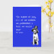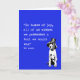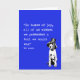 Humorous pointer in a top hat card with a quote from WH Auden - "In times of joy, all us wished we possessed a tail we could wag"