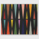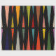 This wrapping paper has a mid-century modern design of triangles facing each other repeating across the design.