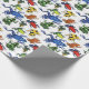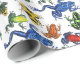 The wrapping paper's design features an image of several colorful poison arrow frogs illustrated by artist Dawn Witherington.
