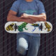 Four poison arrow or dart frogs on a cool skateboard by illustrator, Carolyn McFann. Makes a great holiday gift for the herp lover in your life.