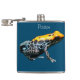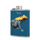 A photograph of a yellow, black and green poison dart frog adorns this customizable flask!