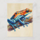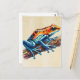 This postcard features watercolor artwork of an orange and blue poison dart frog (aka poison arrow frog) poised on a branch.