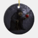 Lightweight, smooth, pure white ornament with nice sheen. Perfect size to be seen from across the room ... and to attract closer inspection! Price was great for ordering enough for the whole family! Clear, bold black design just as requested. Matches the order exactly. Just so nice!