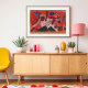 Fun bright artwork that really captures the mood I’m going for! Pop art with cyberpunk energy. A little sweet but also spicy. This art is the perfect size and vibe for our art gallery wall. The printing looks great, high quality with vibrant colors! I went with the semi-gloss finish, which adds a little extra shine and thickness to the print making it excellent for high-traffic areas like the staircase wall.