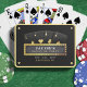 Black and gold poker themed bachelor party playing cards with four aces and marquee sign. Personalize it with the groom's event details.