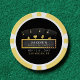 Black and gold poker themed bachelor party poker chips with four aces and marquee sign. Personalize it with your event details.