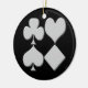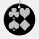 Red and black silver poker card suits tree ornament. Gambling deck red and black, clubs, spades, hearts, diamonds.