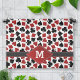 This cool, poker inspired kitchen towel has a background pattern made of playing card suits (spades, clovers, hearts, diamonds). A black ribbon graphic runs across both edges, with a red diamond where you can add your initial in white (change the template and it will change on both diamonds). This is the perfect classy, custom towel for an expert card game player, whether your game be Poker, Euchre, Bridge, Blackjack or any other card game.