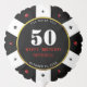 Cool, black, white, red and gold casino poker chip 50th birthday party balloon. Personalize it with your event details.