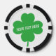 Custom poker chip golf ball marker with lucky clover logo. Personalize with your own funny quote, name or saying. Make your own fun golfing gift for friends and family. Double sided design with custom background color. Sports themed presents and party favors for men or women. Cool idea for Birthday, Holiday, boss day, reunion, Las Vegas wedding, company day, employees, corporate staff, club, office personnel, coach, players, dad and mom etc. Professional poker tokens with colored edges. Easy to take with your equipment.