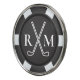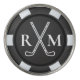 Golf Logo style with monogrammed initials. Looks like a black poker chip. Golf clubs with monogrammed initials. Black and white.