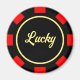 Poker chip marker fridge magnets. Casino gambling coin token design. Black and red colors.