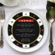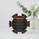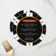 Cool, black, white, red and gold casino poker chip wedding reception menu. Personalize it with your event details.