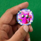Cute kawaii cat illustration on a poker chip, design by matilda lorentsson.