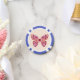 An orange, gold, and purple kaleidoscope butterfly with marbled colors decorates these ceramic poker chips. The background is a light sand color with a purple edge.