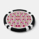 Poker chips with a vibrant pink floral pattern set against a white background. Bold black and white segments circle the edges, creating a striking contrast.