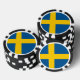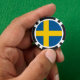 Crafted with precision and attention to detail, each chip proudly displays the iconic elements of the Swedish flag. The design prominently features the yellow Nordic cross on a blue background, symbolizing Sweden's rich history, cultural heritage, and national identity.