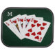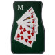 Five playing cards forming the poker royal flush hand against the dark green background. The Royal flush is the highest-ranking standard poker hand. This is the "hearts" suit royal flush. Good luck! An elegant set of car floor mats to decorate your vehicle and add a designer touch to it. Show your unbeatable personality and style with this unique set of car mats and give your car a fresh look and feel. Customizable monogrammed product. You can change the image and you can change or delete the letter "M". Do not forget to use the "Personalize", or "Edit design" button, or the blue link "Details" --> "Click to customize further" --> "FILL/FIT" to ADJUST THE DESIGN TO THE SIZE AND SHAPE of the product, to rotate it, to add your own text, or to change the type, color, size, and position of the monogram letter. Just be creative and have fun. These car floor mats make a good gift for any occasion. Buy one, enjoy, and be happy.