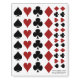 This poker inspired sheet of temporary tattoos features all the playing card deck suits: clovers, spades, hearts and diamonds. They're all in black and red. Each suit appears on the tattoo sheet twelve times: six large and six small, with 48 total tattoos. These fun tattoos are perfect for anyone who loves card games, from poker to euchre, bridge, whist or blackjack.