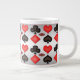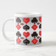 Aces, hearts, spades and diamonds playing card pattern over silver background.