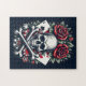 This artwork features a striking composition centered on a skull and crossbones, symbolizing danger and intrigue. Surrounding the skull are Ace playing cards, representing luck and the high stakes of games like poker. Scattered poker chips add a sense of excitement and risk, while vivid red roses introduce a contrasting element of beauty and passion. The blend of these motifs creates a bold visual narrative, evoking themes of chance, mortality, and romance.