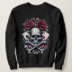 This artwork features a striking composition centered on a skull and crossbones, symbolizing danger and intrigue. Surrounding the skull are Ace playing cards, representing luck and the high stakes of games like poker. Scattered poker chips add a sense of excitement and risk, while vivid red roses introduce a contrasting element of beauty and passion. The blend of these motifs creates a bold visual narrative, evoking themes of chance, mortality, and romance.