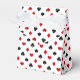 This Poker inspired playing card themed design features a repeating pattern of red and black diamonds, clubs, hearts, and spades.
