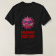 My 11 yo wore adult XL (5’7” 165#). The 8yo is small framed. She wore adult small and tied it in the back. Grandma wore adult large with long sleeve shirt underneath. Tall girl adult medium. Dark haired male adult large. Good quality dark Heather gray, Gildan brand shirt. -it was next up from basic choice and cost about $20 per shirt. Not too thick or thin. Washed and dried well, no major shrinkage. Not see-through. Can wear a bra under it fine. Screen print is just as shown and well done, front and back.