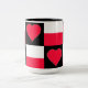 A fun two-tone Poland coffee mug for proud Polish people. With the a unique checkered heart pattern inspired by the national flag of Poland. Makes a fun gift idea for Polish friends and family, and anybody who loves Poland.