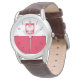 The watch looks really great! Very sharp and well done. The leather band is really nice, though for a man's watch I think it should be longer. Unfortunately, it isn't big enough for my husband's wrist but I will get a replacement because he is very excited to wear it!