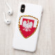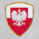 Poland flag, with coat of arms superimposed. Rzeczpospolita Polska.