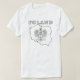 Simple design with a map outline of Poland with the Polish White Eagle, the coat of arms or crest of Poland in the center. The word Poland is above the map.