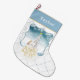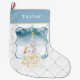 Personalize this sweet Christmas stocking with your name, prior to placing into your shopping cart. Both sides feature a sweet friendship between a polar bear and a penguin standing next to their lighted Christmas tree.