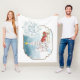 Curl up on a winter's night with this cozy blanket and let this cute polar bear keep you company as he scouts out Santa's sleigh filled with presents next to a lighted Christmas tree on a snowy night. Beautiful font wishes you a Merry Christmas on the top left.